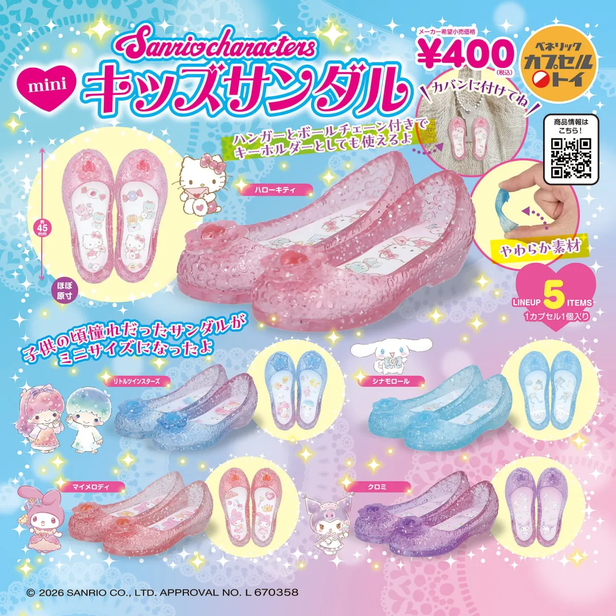 幼少期にサンリオキャラクターたちに憧れを抱いた方も多いのではないでしょうか。その気持ちを思い起こさせる新商品、「サンリオキャラクターズ ミニキッズサンダル」が、2026年4月下旬より全国のカプセルトイ自販機に揃って登場します。