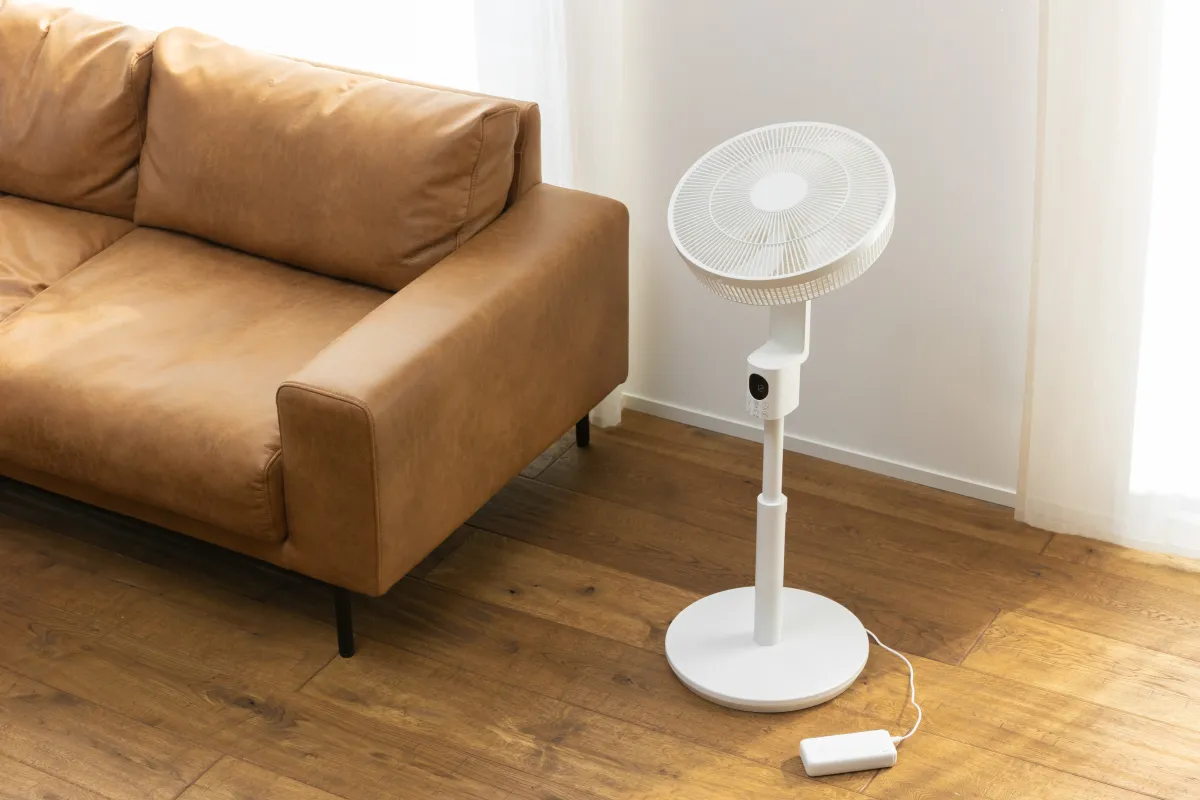 「HAKOBU-FAN」は風量だけでなく風向きや角度の調整も自由自在です。