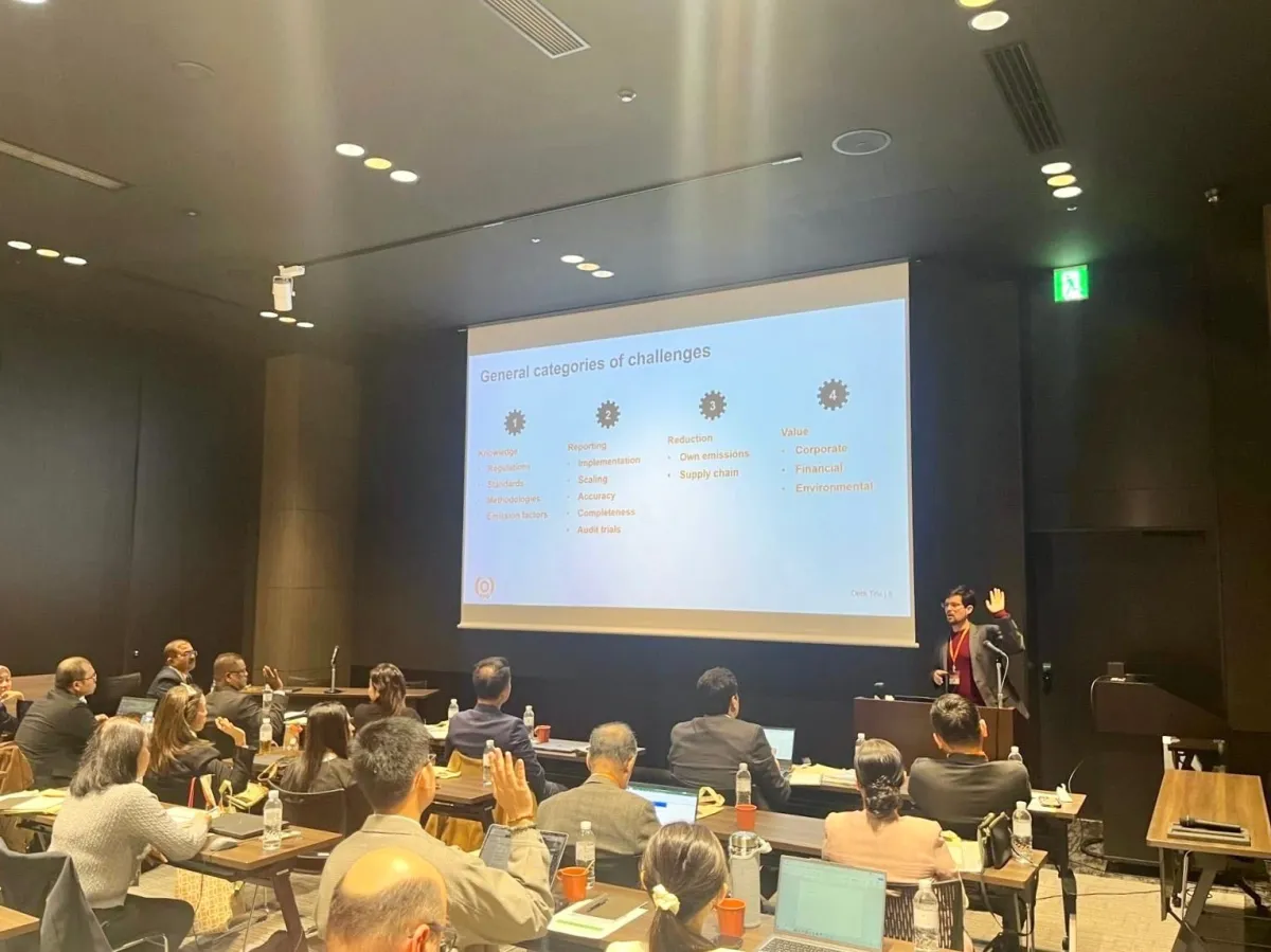 APOは1961年に設立され、アジア太平洋地域の持続可能な発展と生産性向上を目指しています。本プログラムは35名の参加者を対象に、脱炭素化や循環経済の重要性を普及・啓発するためのもので、当社はその一翼を担うべく参加しました。特に、GHG(温室効果ガス)排出量の算定と可視化に関するノウハウを国際的に共有する重要な機会としての位置づけです。