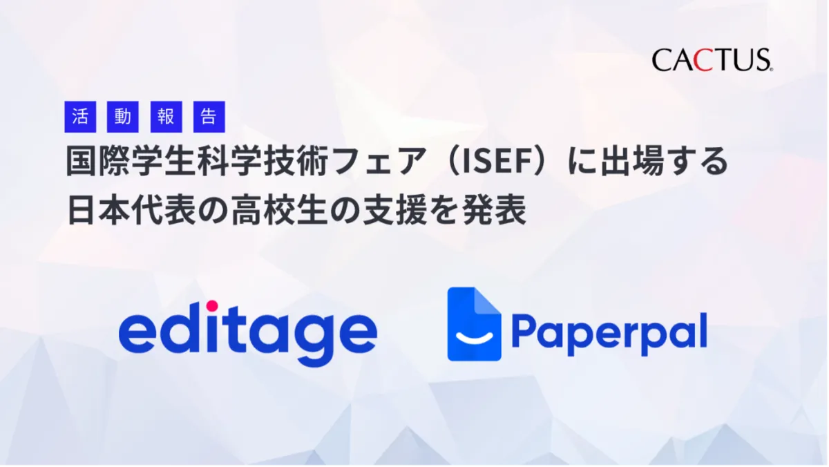 カクタス・コミュニケーションズ(以下:カクタス)は、2026年5月に開催される「Regeneron International Science and Engineering Fair 2026」(ISEF2026)に出場する日本の高校生への支援を発表しました。この国際的な科学技術コンテストは、高校生が自らの研究を世界に向けて発表する重要な舞台であり、カクタスはその準備をサポートします。