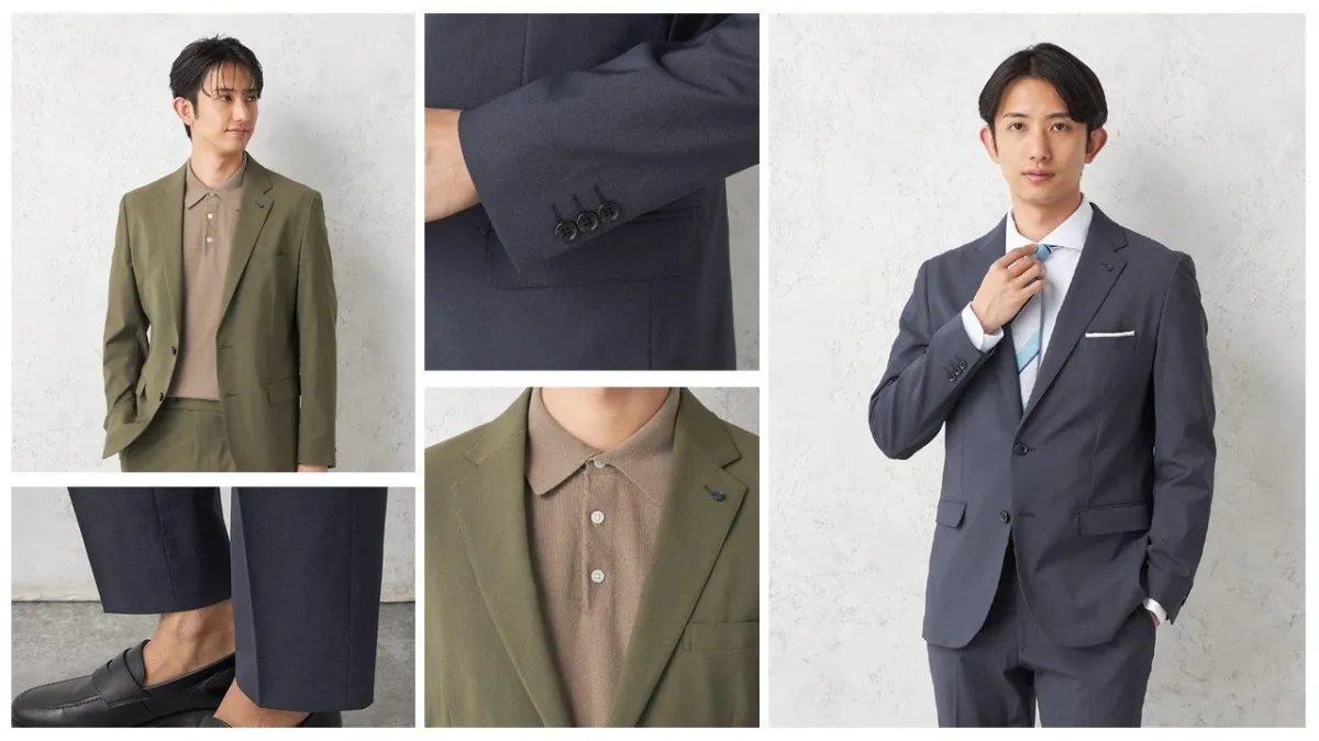 このセットアップは、軽快なオフィスカジュアルからビジネスシーンまで幅広く着用できるのが魅力です。Tシャツやスニーカーで気軽に楽しむことも可能ですが、ネクタイやドレスシューズを合わせれば、よりフォーマルな印象にも変わります。また、マシンウォッシャブル機能が搭載されているため、メンテナンスも非常に簡単。春から秋にかけての長いシーズンにわたって、清潔で快適な着心地を保ってくれます。