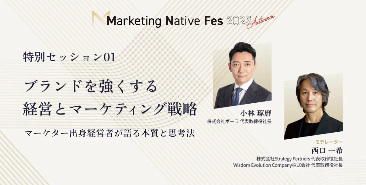 2025年10月8日(水)、東京のANAインターコンチネンタルホテルで、「Marketing Native Fes 2025 Autumn」が開催されます。このイベントでは、注目の特別セッションにポーラ株式会社の代表取締役社長、小林琢磨氏と、Strategy Partnersの代表取締役社長、西口一希氏が登壇します。お二人の経験を基に、ブランドを強化するための経営とマーケティング戦略について深く掘り下げていきます。彼らはそれぞれのキャリアにおいて、ブランドの成長を実現するための成功事例を数多く持っています。