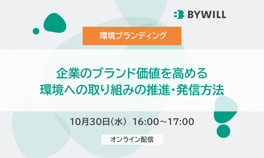企業の持続可能性とブランド価値がますます重要視される現代、環境への取り組みを自社のステークホルダーにどう伝えるかが問われています。株式会社バイウィルは、2024年10月30日(水)にオンライン開催される無料セミナー「企業のブランド価値を高める、環境への取り組みの推進・発信方法」を通じて、その解決のヒントを提供します。