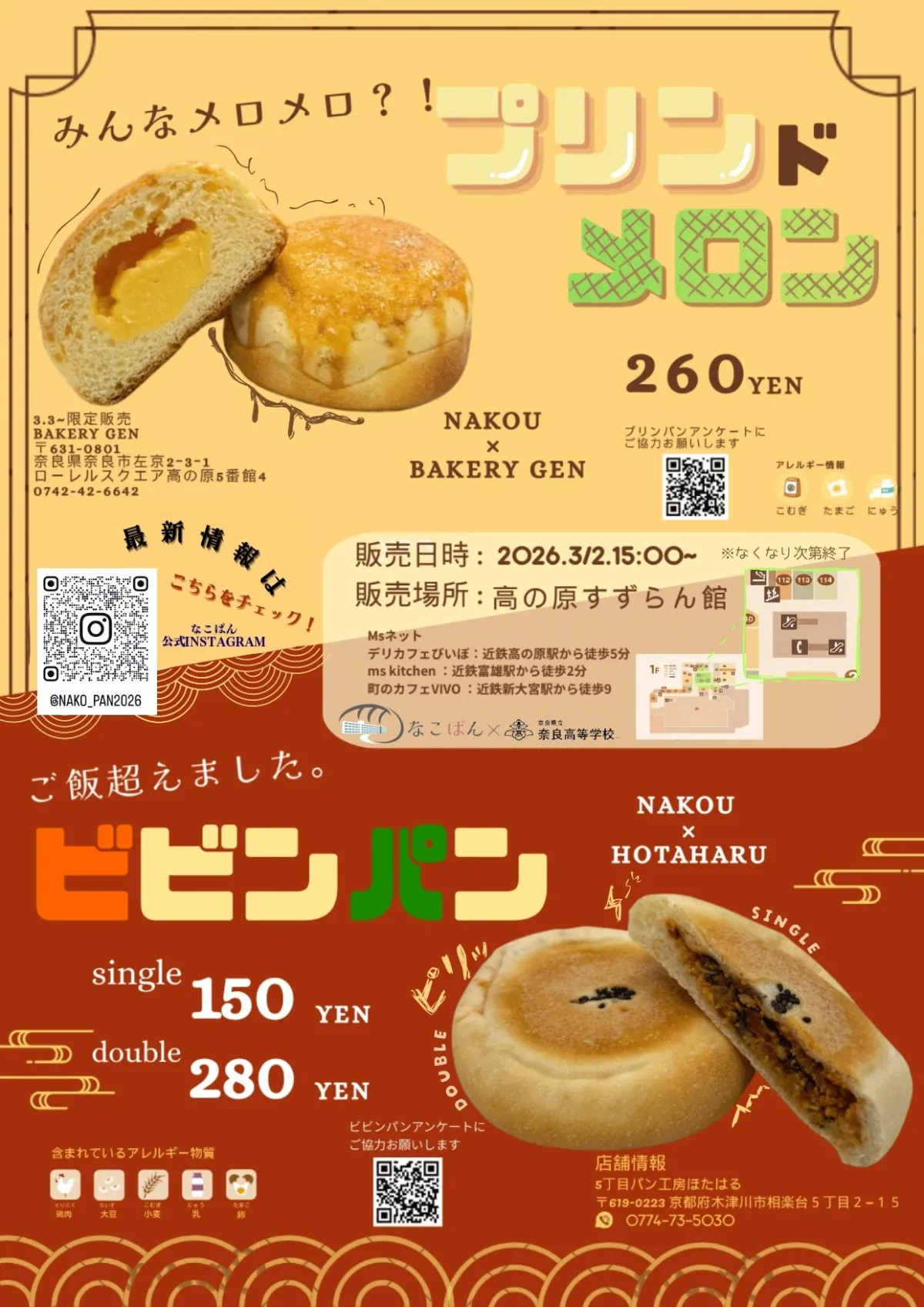 - - メロンパンは、奈良高校内のアンケートで最も人気のあるパンで、4割以上の生徒が支持しています。さらに、96%の生徒がプリン好きというデータから生まれたこのパンは、メロンパンとトロリとしたプリンの最高の組み合わせです。サクサクした食感ととろけるプリンの絶妙なバランスは、一度食べてみる価値があります。(提供:BAKERY GEN)