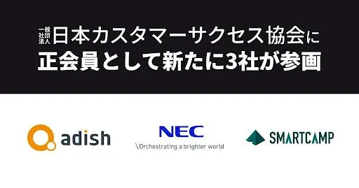 2024年12月に設立された一般社団法人日本カスタマーサクセス協会が、日本電気株式会社(NEC)、スマートキャンプ株式会社、アディッシュ株式会社の3社を新たな正会員として迎え入れた。これにより、協会の活動はさらに多様化し、日本のカスタマーサクセスの発展に寄与することが期待されている。