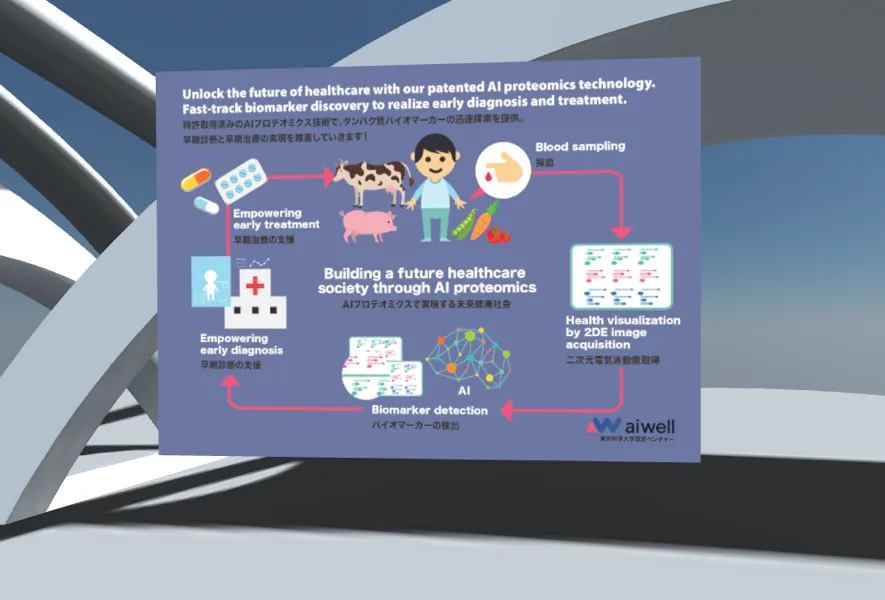 DOICメタバース空間は、東京科学大学の産学共創機構オープンイノベーション室が推進するプロジェクトで、大学や研究機関が持つ知識を広く社会に共有し、社会実装を加速することを目指しています。aiwellは、蔵前ベンチャー相談室との協力により、この革新的な取り組みに参加し、AIプロテオミクスの最新技術を発信します。