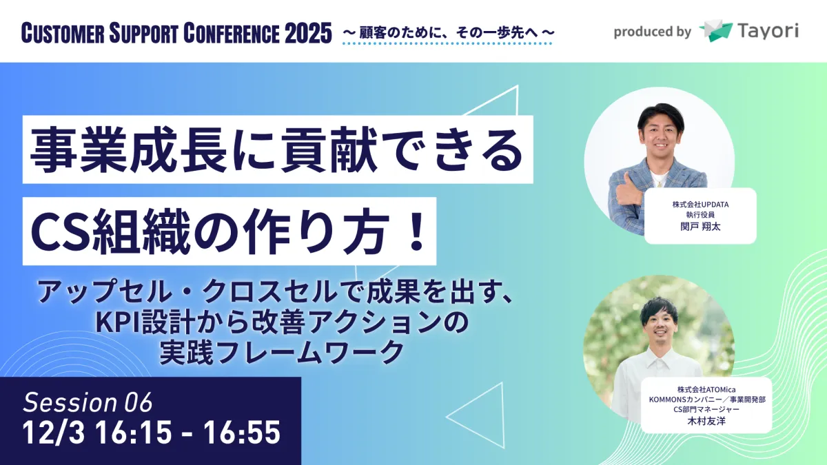 2025年12月3日、水曜日にオンラインで開催される予定の『Customer Support Conference 2025 ~顧客のために、その一歩先へ~』に、株式会社UPDATAが登壇します。UPDATAは、国産のカスタマーサクセスプラットフォーム「MagicSuccess」を提供しており、顧客の声を成長の力に変える重要性を強調しています。