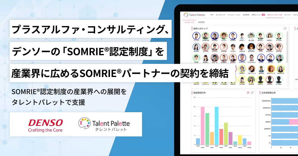 株式会社プラスアルファ・コンサルティング(PAC)は、デンソーと新たにSOMRIE®パートナー契約を結びました。この契約の目的は、デンソーが展開するSOMRIE®認定制度を広め、産業界におけるソフトウェア人材の育成を支援することです。