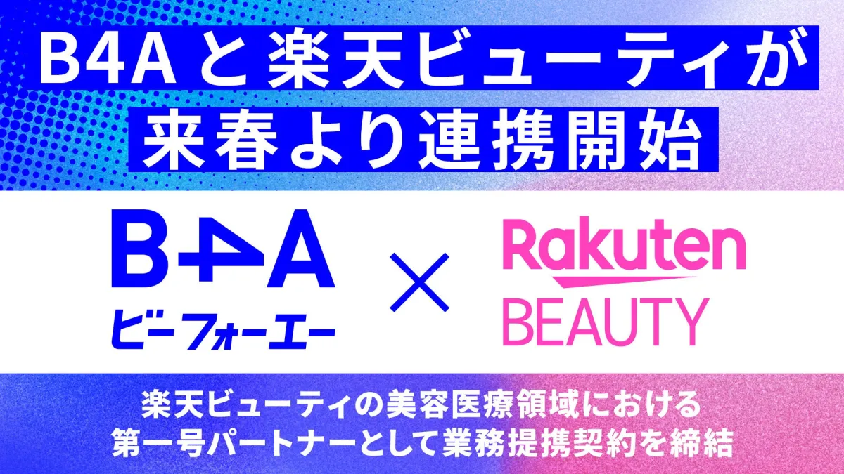 株式会社B4Aが開発・販売を行う自由診療クリニック向けのデジタルトランスフォーメーション(DX)ツール『B4A』が、2026年春に向けて楽天グループ株式会社が運営する美容サロン予約サービス『楽天ビューティ』との業務提携契約を結びました。この提携により、ユーザーは楽天ビューティを通じて約30院の美容クリニックの予約ができるようになります。