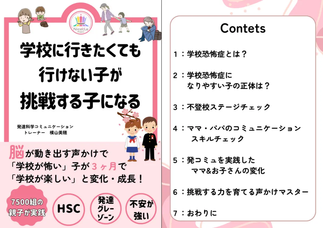 この冊子の中では、多くのお子さんが学校に行くことを恐れている背景やその意義、そしてそれに対する適切なサポート方法について詳しく解説されています。実際に学校に行けないと感じているお子さんや、その親御さんが抱える悩みを解決に導く、具体的なステップも提示されています。