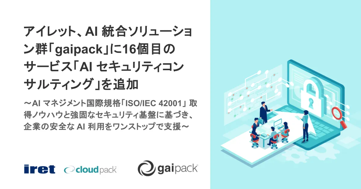 アイレット株式会社(東京都港区)は、同社のAI統合ソリューション群「gaipack」に16個目のサービスとして「AIセキュリティコンサルティング」を追加することを発表しました。この新しいサービスは、企業の生成AIの導入や活用に伴うセキュリティリスクを包括的に管理し、安全な活用体制を構築することを目的としています。