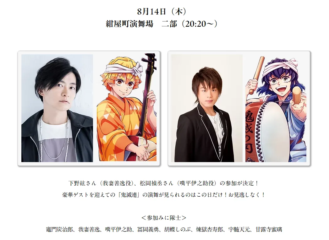 2023年8月14日、徳島市で待望の阿波おどりが開催されます。この日、特に注目を集めるのは人気アニメ『鬼滅の刃』から、声優の下野紘さん(我妻善逸役)と松岡禎丞さん(嘴平伊之助役)が参加することです。開催場所は紺屋町の株式会社バル演舞場、第2部の performer lineup に名を連ねることが決定しました。