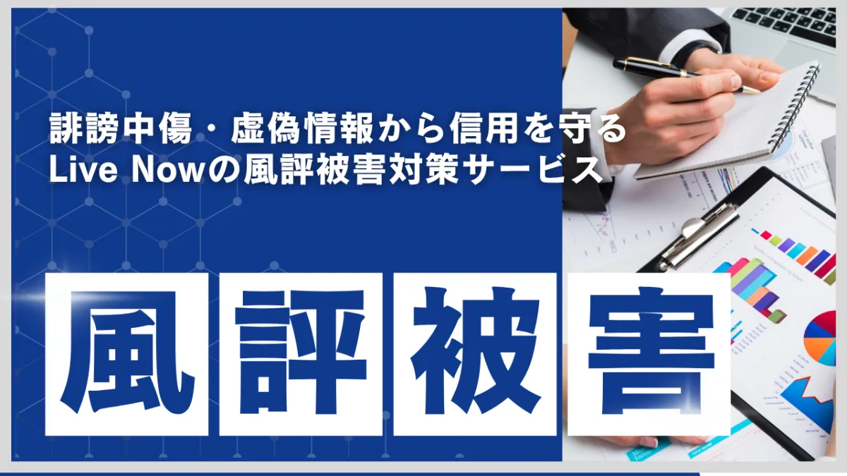 株式会社Live Now(東京都渋谷区、冨永悠太代表取締役)は、2025年7月1日から企業や個人を対象とした「風評被害対策支援サービス」の提供を本格的に開始します。このサービスは、風評や誹謗中傷、口コミ炎上などによるデジタルリスクへの対策を提供し、削除作業から再発防止策まで対応します。