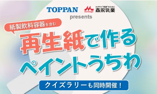 TOPPANは昨年に引き続き、本イベントに参加し、紙製飲料容器のリサイクルをテーマにしたワークショップを企画しました。今年度は森永乳業と協力し、子どもたちが紙の容器を通じて環境問題を楽しみながら学ぶことができるコンテンツを用意しました。