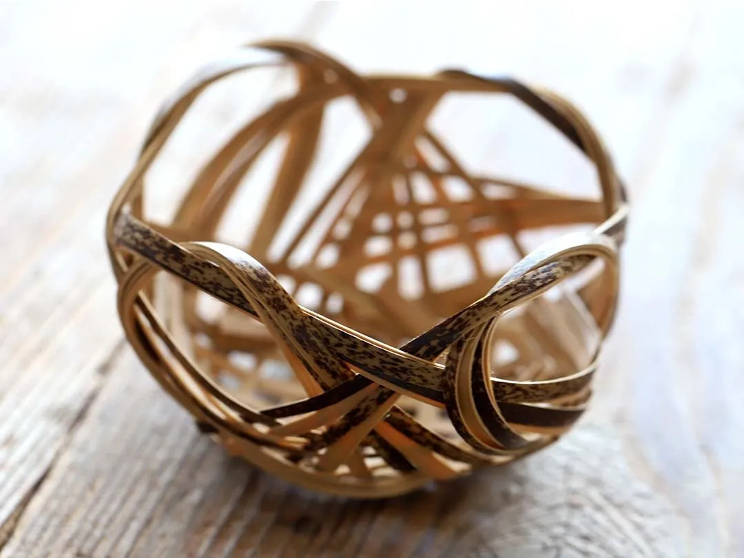 虎竹とは、高知県須崎市安和地区で自生している竹で、その表面にはユニークな虎模様が浮かび上がります。一つとして同じ模様はなく、自然の美しさが一つ一つの作品に宿ります。また、虎竹は成長が早く、わずか3ヶ月で20メートルに達することから、持続可能な資源としての面でも注目されています。