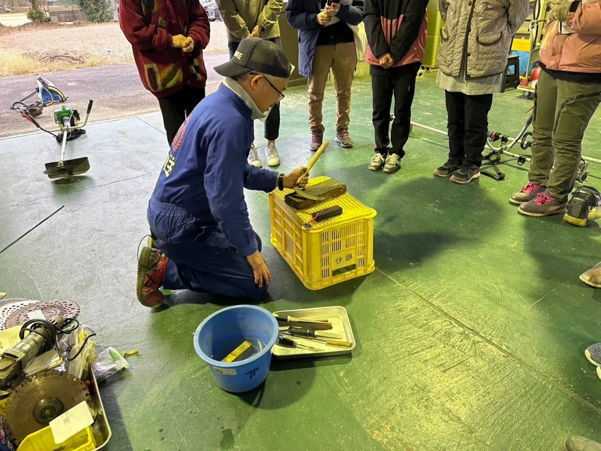 実際に刈払機を用いて清掃や部品チェックの手順を学びます。参加者全員が自らの手でメンテナンスを行う体験を通じ、知識を深めることができました。これにより、自宅でも簡単にメンテナンスを行うことができるようになるでしょう。