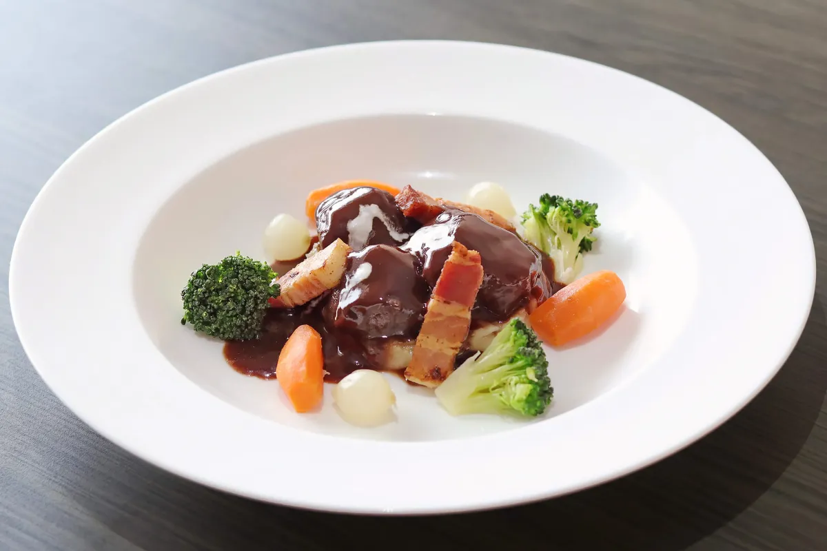 柔らかく官能的に煮込まれたニホンジカの肉は、深い味わいと豊かな香りが特徴です。一口食べれば、そのまろやかさとリヨン風に仕立てられた優しい酸味が口の中で広がります。リヨン風という調理法は、フランス・リヨンの家庭的な料理スタイルを取り入れたもので、玉ねぎやじゃがいも、ベーコンなどの素朴な材料を使って作られるのが特長です。