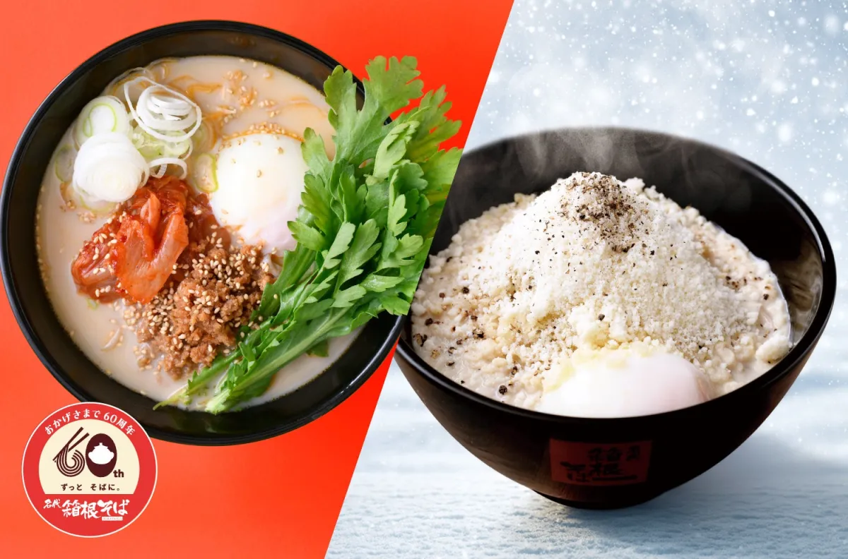 箱根そばが60周年を迎え、特別なキャンペーンを実施します。今年の冬、特に注目したいのが、大学生たちとの共同開発による新メニューです。これは「ワカモノ(大学生)」たちの視点を取り入れ、彼らの「食べてみたい!」という想いをカタチにしたものです。2品の新感覚そばが、2026年2月10日から順次発売されることになりました。