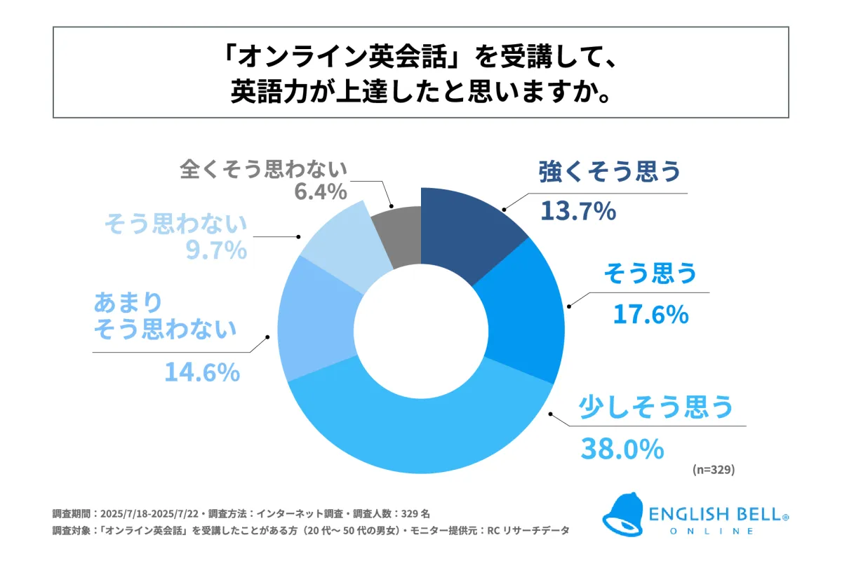 株式会社アイキューブが最近実施した調査によると、20代から50代のオンライン英会話受講者の約7割が英語力の向上を実感しています。しかし、同時にその4割以上が受講を辞めているという現実に直面しています。特に、受講を辞めた人の約7割が1年未満で辞めてしまっていることがわかりました。この調査は、オンライン英会話が普及する中での実態を明らかにし、未来の学習スタイルに示唆を与えるものとなっています。