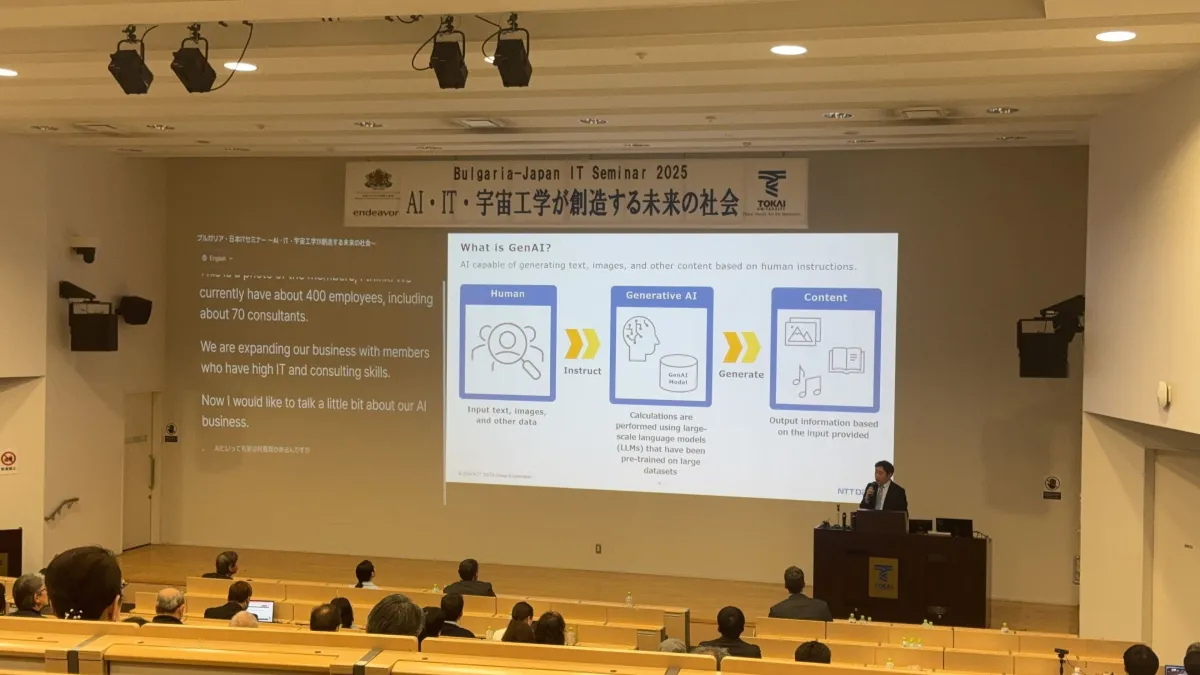 2023年、東海大学で行われた「ブルガリア・日本ITセミナー ~AI・IT・宇宙工学が創造する未来の社会~」において、FlittoのAI同時通訳システムが導入されました。このイベントは、在日本ブルガリア大使館と東海大学、さらにエンデバー ジャパンとの共催によるものです。
