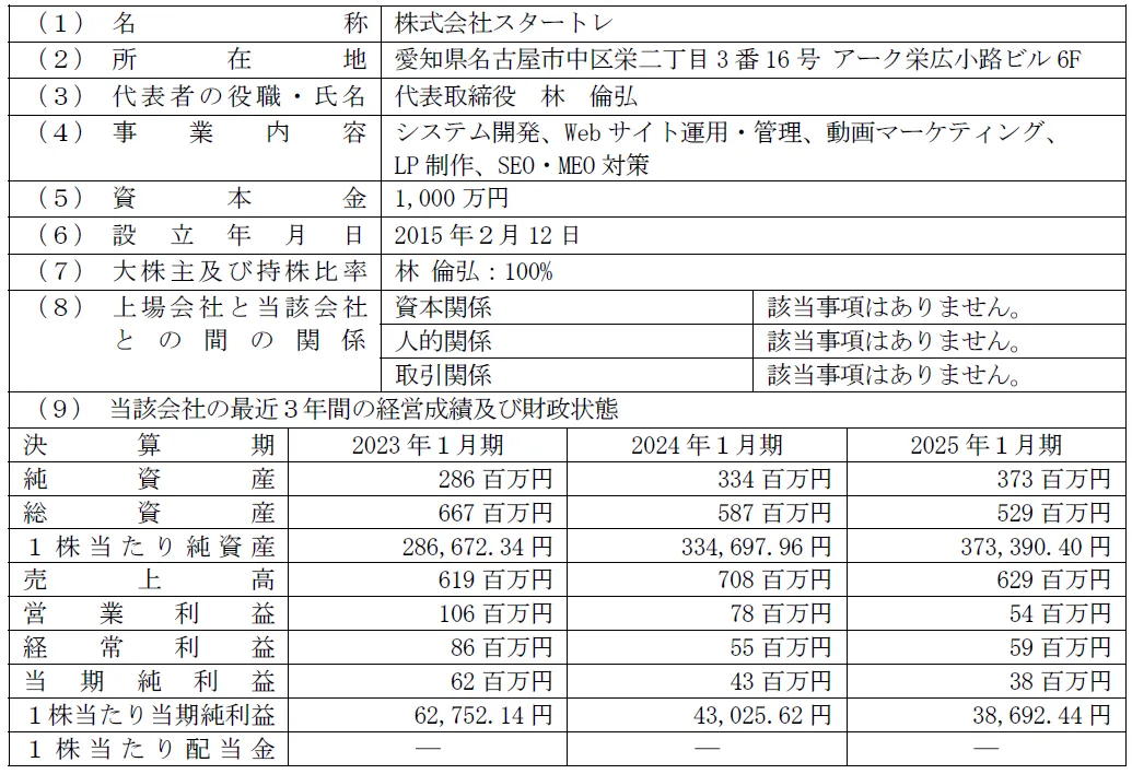 スタートレ社は2025年7月1日付でrakumoの子会社となります。これに伴い、スタートレ社の業績は2025年12月の業績発表より連結に反映される予定です。また、rakumoからスタートレ社へ役員を派遣する計画もあり、両社の連携が期待されます。