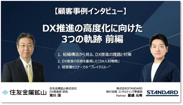 住友金属鉱山株式会社は、2022年にデジタルトランスフォーメーション(DX)推進部を設立し、企業全体のデジタル変革を進めてきました。DX推進にはさまざまな課題があり、特に全社横断でのKPIの整理やDX人材の育成といったトピックが浮上しました。そこで、株式会社STANDARDがその支援を行い、具体的な成果を上げています。