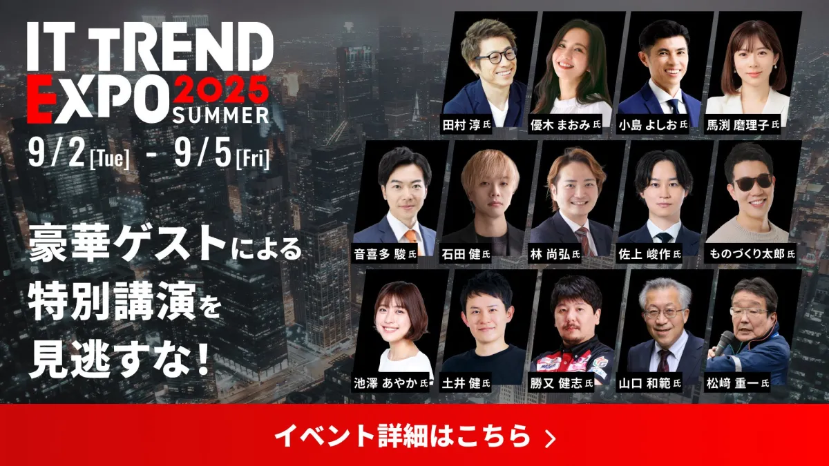 ITトレンドEXPO2025 Summerは、IT産業や新しい働き方に興味がある方々にとって、多くの学びとネットワーキングの機会を提供します。業界での成功を目指す企業やビジネスパーソンにとって、必ず訪れるべきイベントです。参加申し込みは公式サイトから可能ですので、関心のある方は今すぐ登録しましょう!