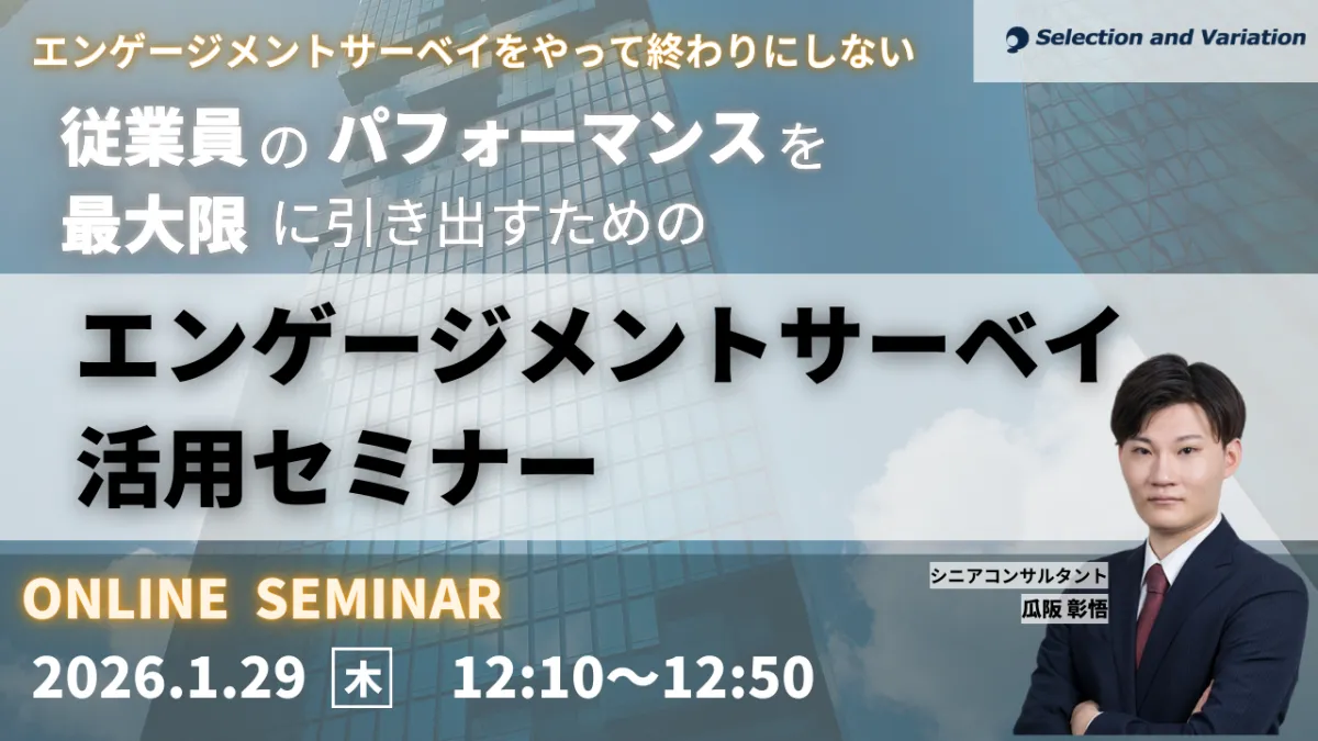 エンゲージメントサーベイは、現代の多くの企業において取り入れられる重要なツールとなっています。しかし、導入しただけで満足してしまう企業も少なくなく、成果を上げられないままとなっているのが現状です。特に、数値だけが得られても、それに基づいた具体的なアクションプランが欠如していることが多いのです。この問題に対応するため、セレクションアンドバリエーション株式会社は、2026年1月29日に「従業員のパフォーマンスを最大限に引き出すためのエンゲージメントサーベイ活用セミナー」を開催することを発表しました。