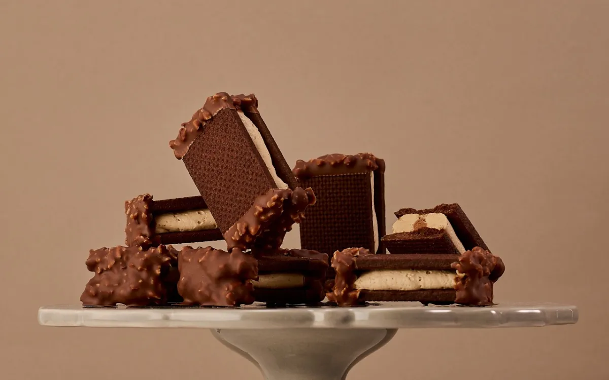 「ナッティクリームサンド」は、こだわりのナッツペーストとチョコレートが融合した贅沢なスイーツです。スイーツの中心には、ナッツペーストを混ぜたバタークリームと濃厚なナッツペーストがサンドされています。この2層の組み合わせが、味わい深さを生み出します。