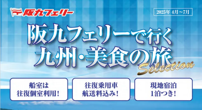2025年の春、阪九フェリーが贈る特別な旅行プラン「阪九フェリーで行く九州・美食の旅セレクション」が登場します。このプランは、4月から7月の間に出発し、別府や湯布院といった温泉地にて、絶品の料理を堪能できる内容となっています。