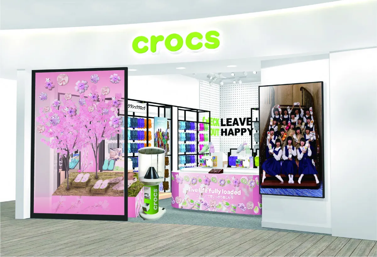 新店舗では、春の訪れを感じる桜デザインの商品が多数取り揃えられており、訪れるお客さまに春のワクワク感を提供します。また、春の新作クロッグ「クラシック フローラル カットアウト クロッグ」や、桜のデザインが施されたジビッツ™ チャームも登場します。これにより、店内には明るく楽しい雰囲気が漂うことでしょう。