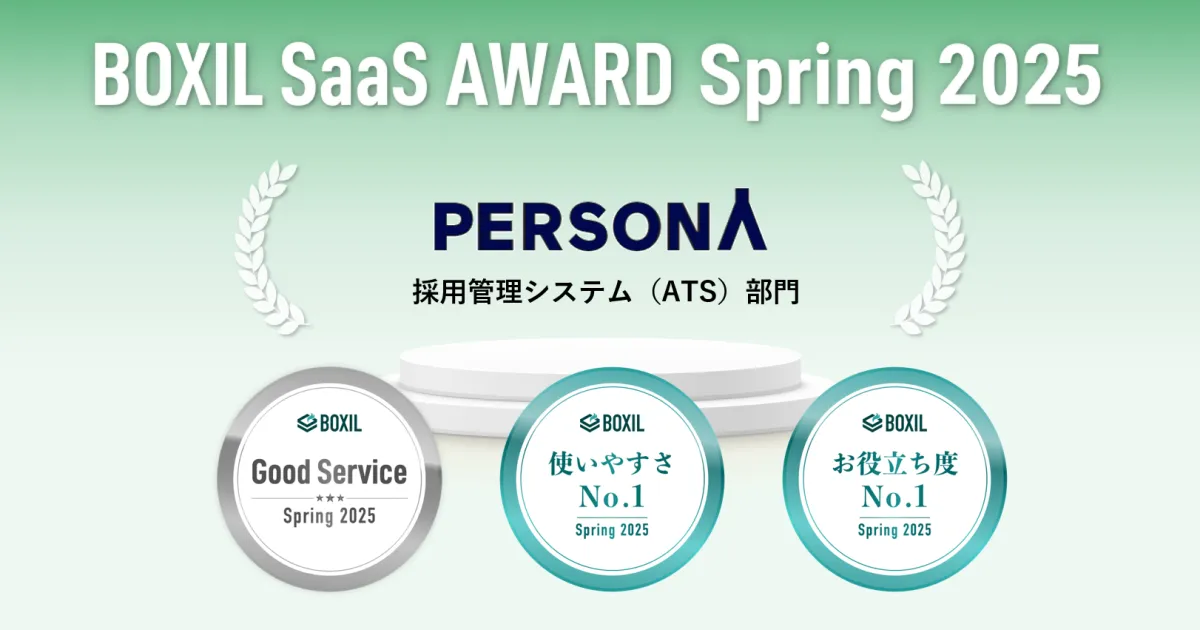 株式会社アサインが提供する採用管理システム「PERSONA」が「BOXIL SaaS AWARD 2025」において、BOXILセクションの採用管理システム(ATS)部門で栄えある1位を受賞しました。また、同日には「BOXIL SaaS AWARD Spring 2025」にもてる主要な項目で選出されるという快挙を成し遂げました。
