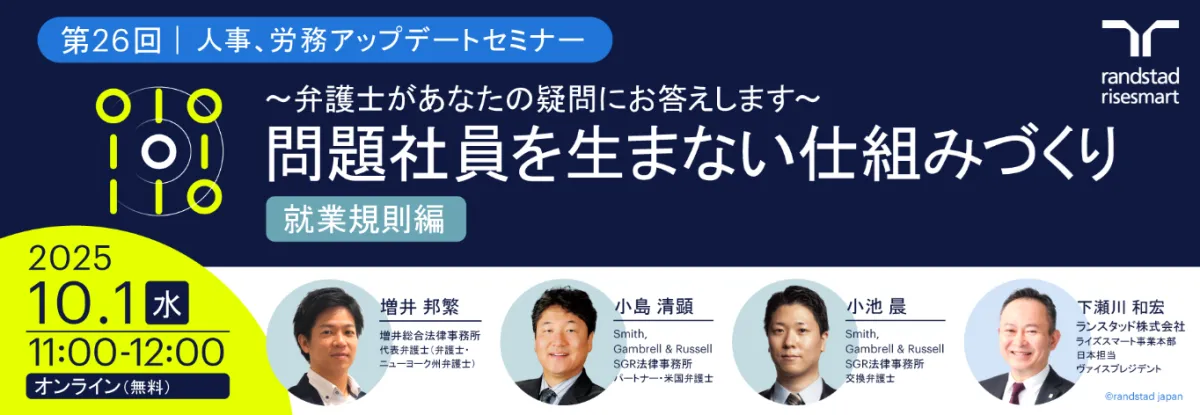 2025年10月1日、ランスタッド株式会社が開催する第26回「人事・労務アップデートセミナー」が注目を集めています。このオンラインイベントでは、弁護士が直接、企業の課題として常に挙げられる「問題社員」に対する効果的な対策を提案します。特に、就業規則の重要性に焦点を当てる内容です。
