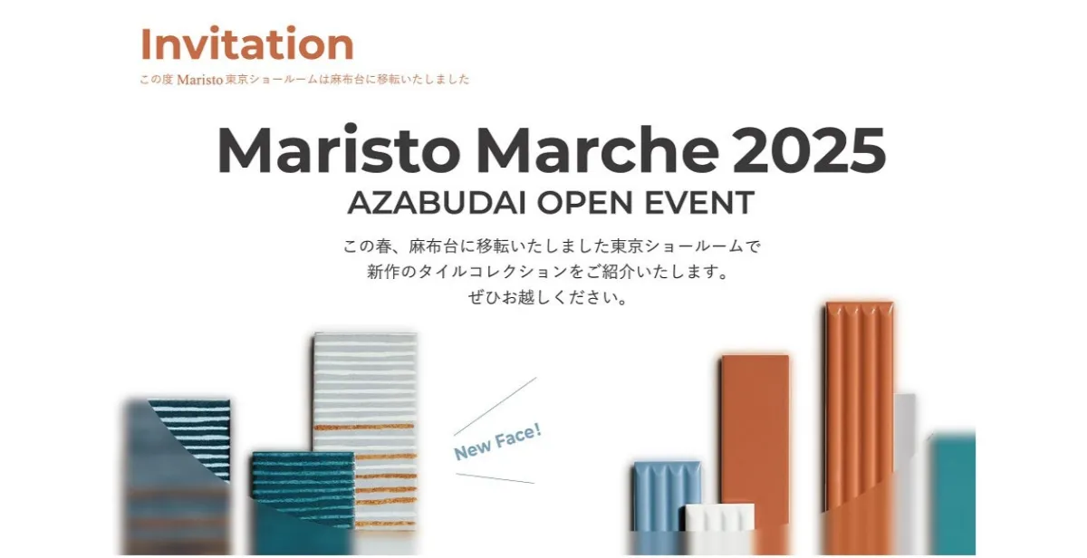 輸入タイルを中心に、意匠性の高いマテリアルを取り扱うタイルメーカーブランドのMaristo(マリスト)が、新たに東京ショールームを港区麻布台に移転し、オープンイベントを開催します。このイベントは2025年4月16日から18日までの3日間にわたり、毎日10:00から20:00まで行われます。ただし最終日は18:30に終了し、18:00が最終受付となります。