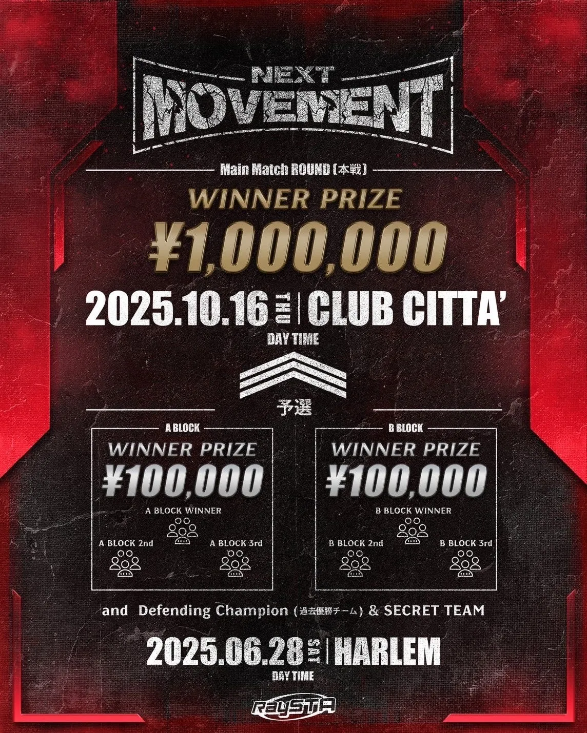 参加者の皆さん、それぞれの個性を存分に発揮し、ダンスの魅力を観客に伝えましょう。次の「NEXT MOVEMENT」の舞台で、あなたのスタイルを魅せることで新しい歴史の一部になれます。あなたの参加を心よりお待ちしています!