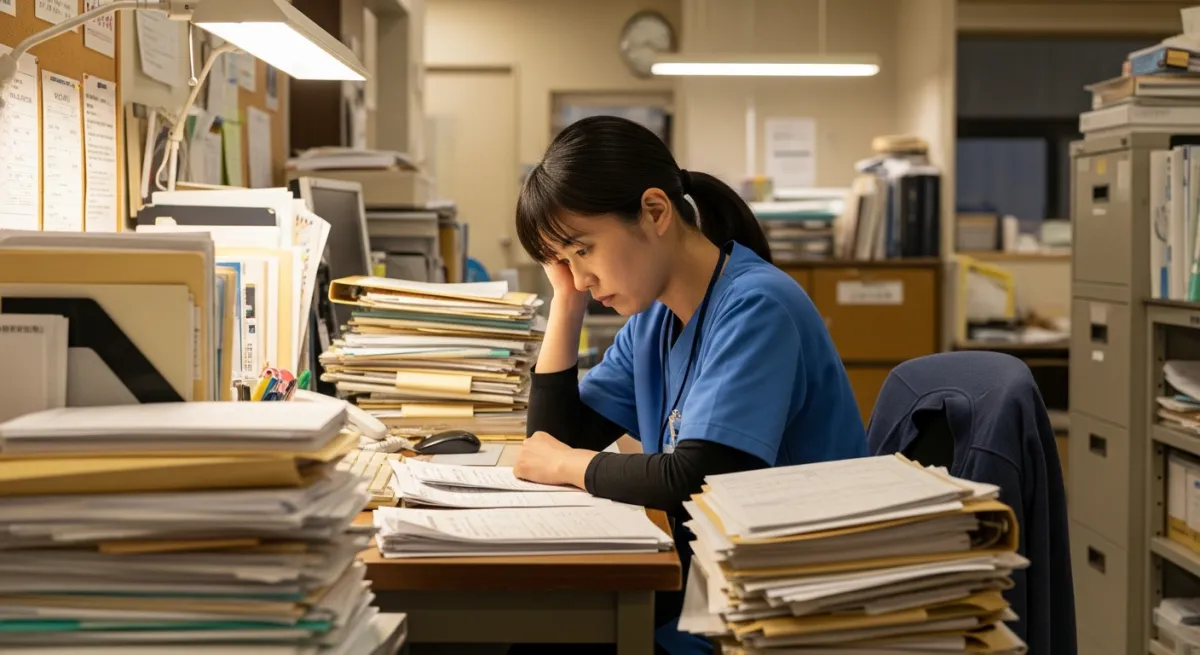 超高齢社会の進展に伴い、日本では医療需要が年々拡大しています。しかし、医療現場では人手不足や長時間労働といった深刻な課題に直面しています。看護師や薬剤師は、臨床業務に加え膨大な事務作業に追われ、かつ、厚生労働省が推進するタスク・シフティングも進行しつつありますが、医療事務員も不足しているのが現状です。さらに、多くの医療機関がデジタル化に遅れをとっており、依然として紙のカルテやFAXが使われているところも少なくありません。