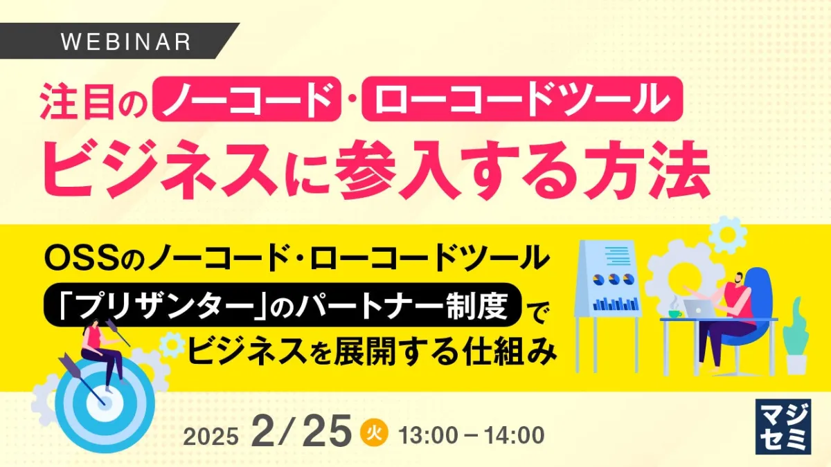 このような内容に関心がある方々に向けて、ウェビナーが開催されます。このウェビナーでは、ノーコード・ローコードツールの魅力や、実際にビジネスにどのように応用できるかを詳細に説明します。特に自社ソリューションに組み入れるプロダクトを探している方には、ノーコード・ローコードの実践的な方法を学ぶ絶好の機会です。