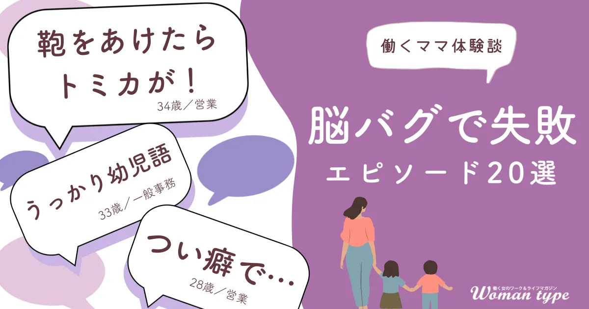 株式会社キャリアデザインセンターが運営するWebマガジン『Woman type』は、働く女性のライフスタイル向上を目指して情報を発信しています。この度、働くママ100人を対象に「仕事と育児の両立で起きた失敗談」に関するアンケート調査を実施しました。本調査では、普段の生活の中で、思わず笑ってしまうような失敗談が多く集まりました。