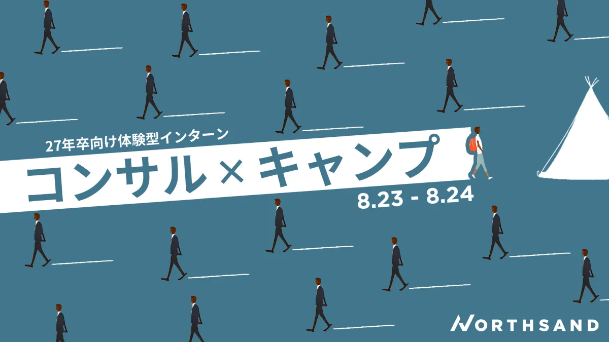 ノースサンドは、2027年3月卒業見込みの大学生・大学院生を対象に、自然の中でコンサルタントとしてのスキルを磨くための「キャンプインターンシップ」を実施します。昨年度には2,000名以上の応募があり、その人気は衰えることがありません。キャンプというユニークな形式を採用し、学生たちが自然な環境で自己理解や業界理解を深めることを目的としています。