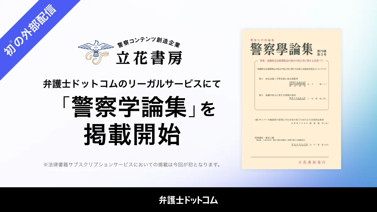 弁護士ドットコム株式会社は、デジタルプラットフォームにおいて立花書房の『警察学論集』の掲載を開始したことを発表しました。この動きは、法律書籍サブスクリプションサービスを活用した初の試みであり、今後の法務リサーチに大きな影響を与えそうです。