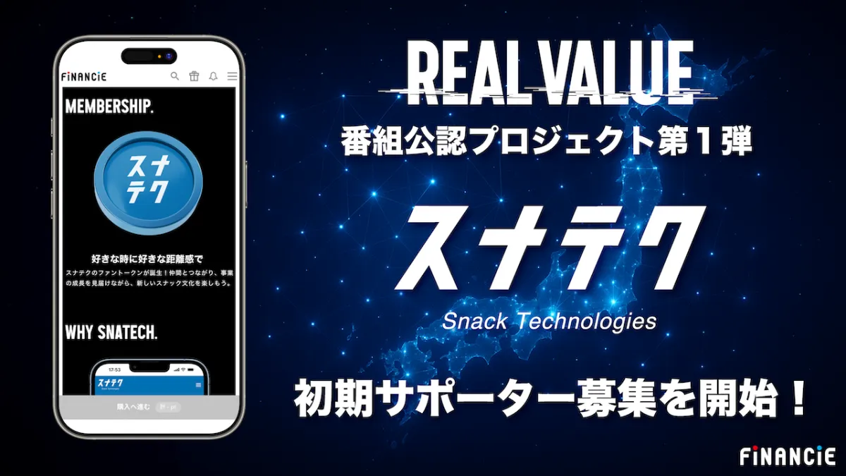 今回のプロジェクトに参加することにより、スナテクのサポーターは「REAL VALUE CLUB」への入会資格とともに、特典として「FiNANCiE賞」を受け取ることができます。加えて、彼らにはトークン保有数や参加状況に応じた支援権も付与され、リアルタイムでのエンゲージメントを強化する仕組みが整っています。
