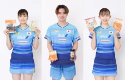 選手たちの中には、早田ひな選手(日本生命)が「海外では味わえない、日本の茄子を使った味噌汁が大好きです。朝食にこのお味噌汁をよく食べています。良い試合をするために頑張りますので、応援よろしくお願いします!」と、自身の食事へのこだわりを語る場面も。宇田幸矢選手(協和キリン)も、日本食の力強さを語っており、「白米を大事に食べています。特に、インスタントごはんはホテルにレンジが無い時でも助けになります」とコメントを寄せています。