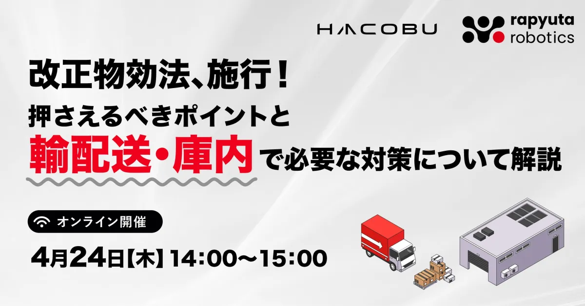 株式会社Hacobuとラピュタロボティクスが共催するオンラインセミナーが、2025年4月24日に開催されることが決まりました。このセミナーでは、2025年4月1日から施行される改正物流効率化法に焦点を当て、その対策について詳しく解説することを目的としています。