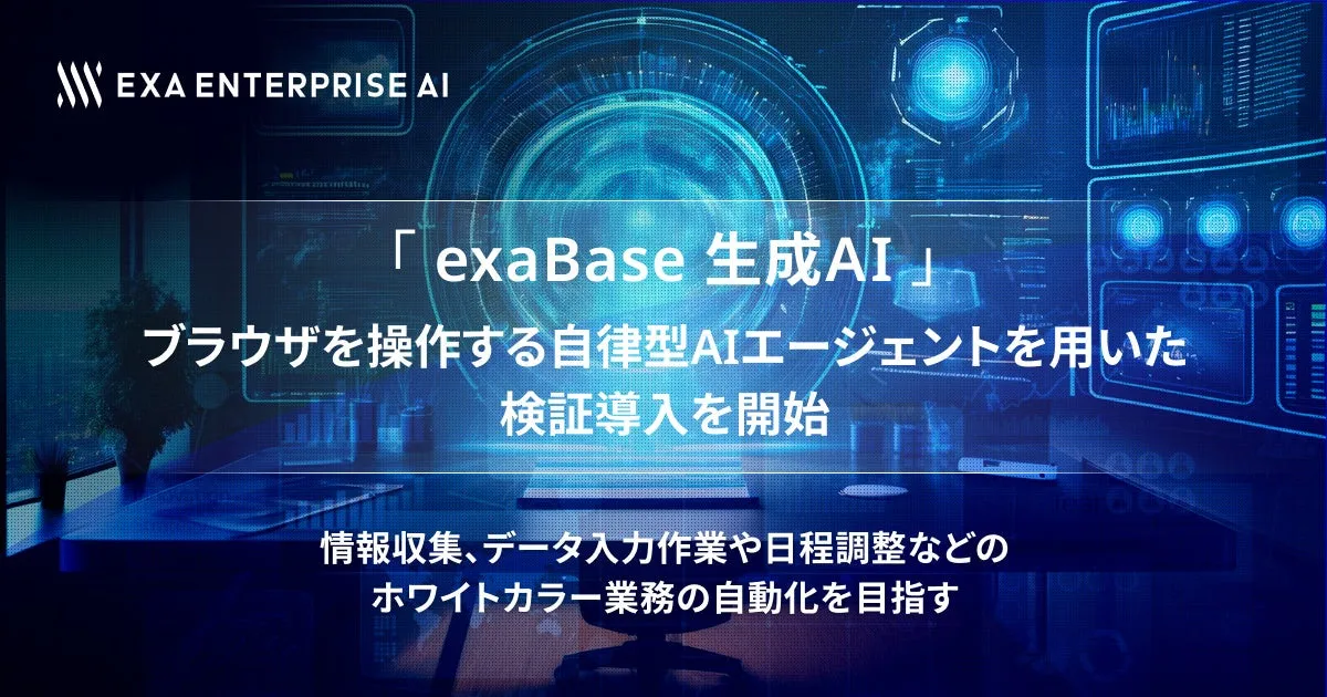 東京都港区に本社を置く株式会社Exa Enterprise AIは、業務効率化の新たな試みとして、自律型AIエージェントの導入をスタートしました。これにより、日常業務の自動化が一層加速することが期待されています。この自律型AIエージェントは、人間の指示を受けて自らタスクを計画・実行する能力を持ち、業務の効率を大幅に向上させることを目指しています。