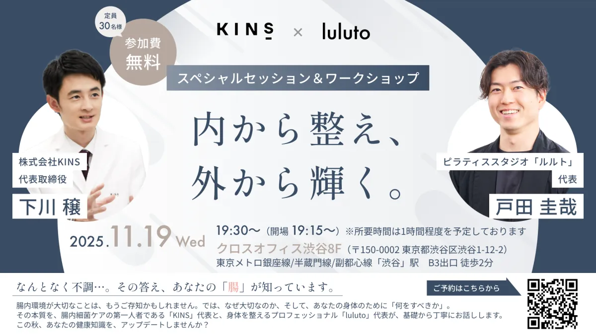 参加者は、腸内環境を整えるための具体的な方法や、身体を美しく整えるための実践的なアドバイスを得ることができます。また、来場者には、KINSから特別なプレゼントも用意されます。