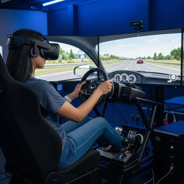 ORENDA WORLDは、こうした問題に対して、「SIMRAKU DRIVE」というVR運転シミュレーターを提案しています。このシステムは省スペース・低コストでありながら、安全運転教育を効果的に実施できる環境を提供します。VRならではの技術を使い、従業員は視覚的に危険を体験しながら学び続けることができるのです。