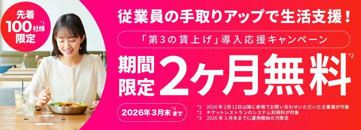 株式会社エデンレッドジャパンが春に発表した「第3の賃上げ」導入応援キャンペーンは、賃上げを検討する企業に向けて実施されています。このキャンペーンでは、実質的に従業員の手取りを増やすことが期待される食の福利厚生サービス「チケットレストラン」を、なんと2ヶ月間無料で提供します。この取り組みは、物価高に直面する中で、社員の経済的な支援を目指すものです。