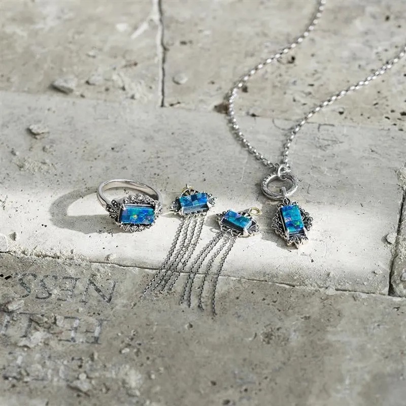 また、モザイクオパールの上にグリーンクォーツを貼り合わせたダブレットストーンも見逃せません。ぷっくりとしたローズカットのクォーツは、水面のような輝きで、オパールの深みある色彩を一層引き立てます。光に触れるたびに、まるで新しい色が生まれるかのような体験が味わえるでしょう。
