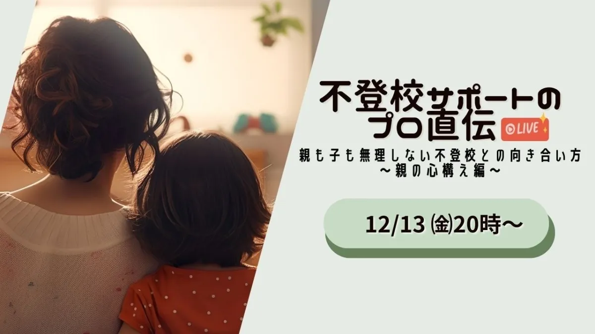 2024年12月13日(金)の20時から45分間、ウェブメディア「不登校オンライン」が提供するオンライン講演会が開催されます。このイベントでは、親と子どもが無理をせずに不登校に向き合うための方法を、専門の講師が分かりやすく解説します。