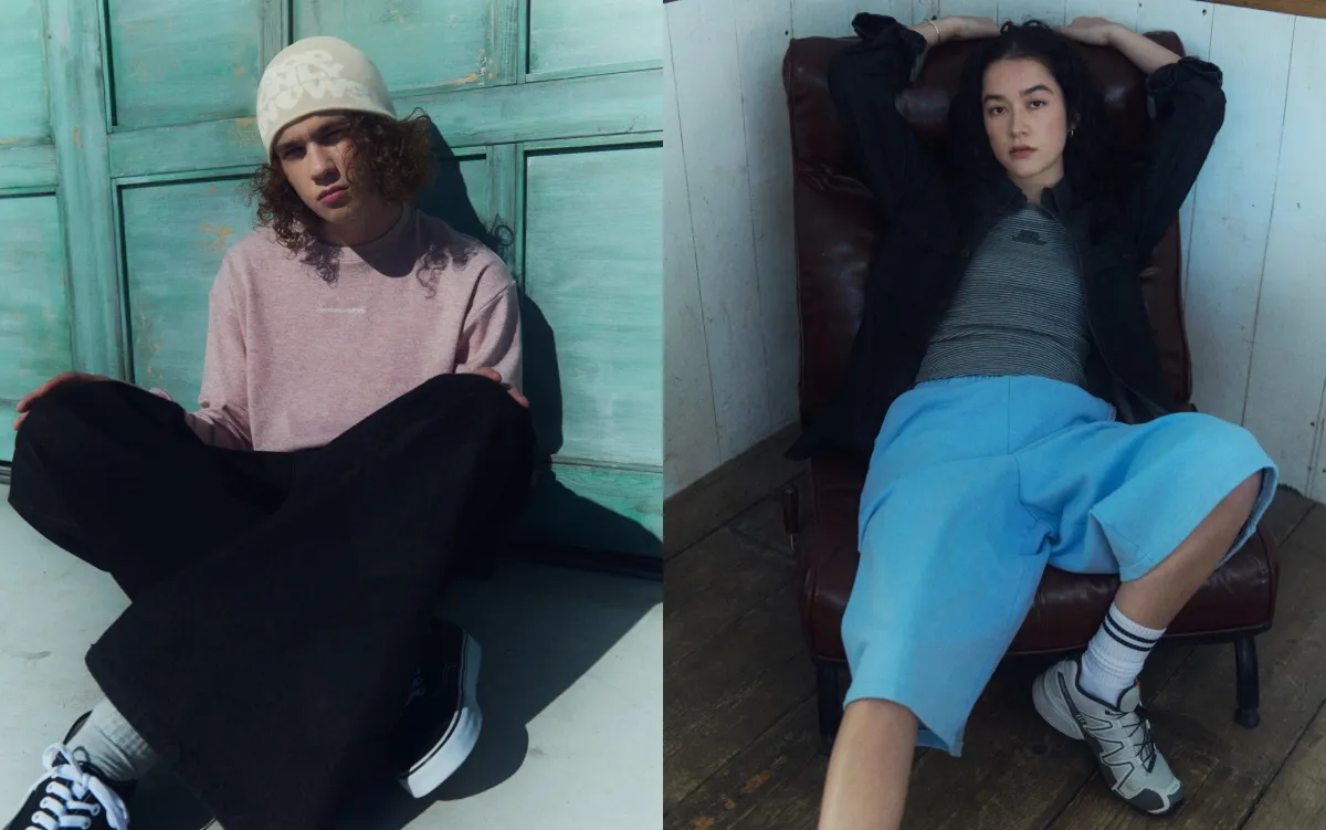 新作の魅力は、グラフィックが際立つTシャツやサーマルシャツ、サマーニット、スウェットなど、多彩なアイテムに見られます。それぞれが柔らかな素材で、動きに寄り添う洗練されたシルエットが特徴です。特に注目は、ピグメントスウェットのセットアップで、存在感のあるカーゴパンツがエッジを加えています。